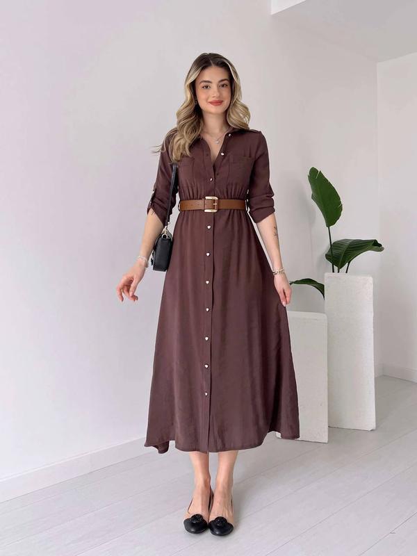 Наша супер сукня 😍 Модель 5514kat Женское платье Размерный ряд S (42-44); L(46-48);XX(50-52); XXX(54-56),4ХL(56-58) Ткань креп жатка, очень приятная на ощупь, не просвечивается) Цвета черный, беж, шоколад и бордовый Платье с длинным рукавом, которое можно аккуратно регулировать, застегивается на пуговицы Талия на резинке, за счет чего идеально садится по фигуре Накладные карманы У комплекті пояс! Очень стильная модель, можно носить под разную обувь и надевать на любой случай Супер качество