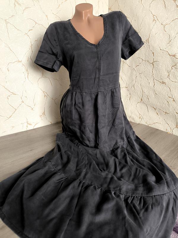 Длинное платье отрезанное по талии, ярусами, по бокам тонкий пояс. Длина 39+89 Полуобхват груди 48 ПО талии 44 НО стегон 53 Плечи 38 рукав 20