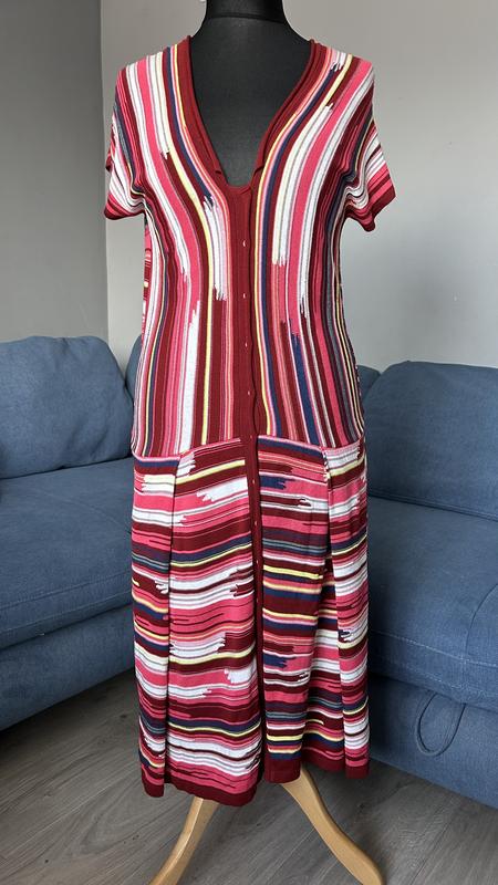 Чудова сукня. Цікавий дизайн. Я носила її спинкою вперед, бо виріз дуже глибокий. Тканина добре драпіюється. Кольори насичені, тканина нагадує принти місоні.