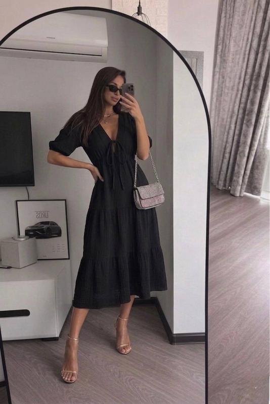 Мод 347 Ткань: муслин Размеры: 42–44,46-48,50-52 Сезон: весна/лето Это легкое платье миди - воплощение элегантной простоты. Изготовлена из легкой текстурной ткани, она обеспечивает комфорт даже в жаркие дни. Фасон имеет V-образный глубокий вырез с завязками спереди, которые создают акцент на груди и позволяют регулировать глубину декольте. Завышенная талия визуально удлиняет силуэт, а мягкая юбка свободно спадает до середины икры, создавая нежный и непринужденный образ. Рукава короткие, с легким объемом, что добавляет немного романтической женственности. Идеально подходит для: • летних прогулок; • отдыха на курорте; • романтических встреч; • неформальных мероприятий. 📏 Размерная сетка 42–44 • Грудь: 92 см • Талия: 60–75 см • Длина: 113 см 46–48 • Грудь: 100 см • Талия: 66–80 см • Длина: 114 см 50–52 • Грудь: 108 см • Талия: 87 см • Длина: 115 см
