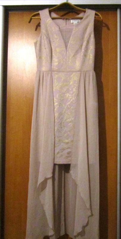 У вас намечается торжественное событие, тогда предлагаем вашему вниманию длинное платье бежевого с люрексом цвета. Впереди по лифу треугольная вставка из сеточки. Отрезное по талии . Сзади потайная молния 50 см. Длина от талии до низа 52 см. От талии идет длинная верхняя юбка из сеточки. 97 см. Имеется поясок атласный – можно завязать как наперед, так и назад. Длина платья 137 см Разм. 6 Фирма EnFocus Studio Цена 1000 грн, возможен торг Также имеются в продаже и другие платья для торжественного случая