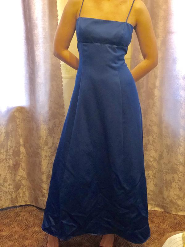 Элегантное вечернее платье с открытой спиной. Надето один раз. Насыщенного синего цвета (Камера, к сожалению, не передаёт). Все необходимые замеры и дополнительные фото высылаю по необходимости. Размер S-M, рост 160-167 см