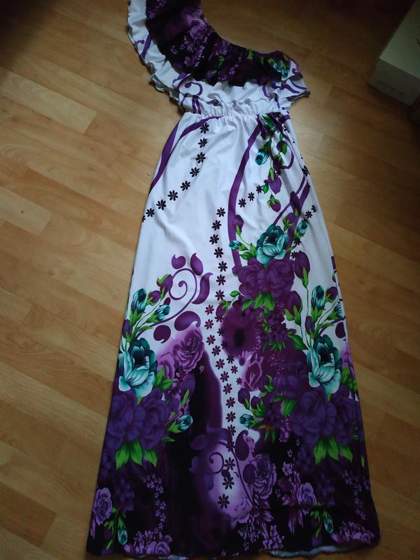 Гарне плаття на одне плече, з воланами. Довжина 145см, пог 36см, тягнеться до 45см, піт 29см, тягнеться до 45см, побіди 50см. Стан нового без дефектів. Фото на тілі немає. Мінімальна ціна, без торгу.