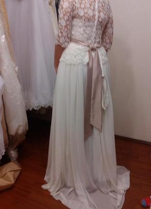 Продам свадебное платье цвета "айвори" с пояском цвета кофе с молоком Одето один раз на свадьбу,не венчаное размер 44-46,можно пробовать 48 Возможна аренда Разумный торг приветствуется Дополнительные фото,замеры-по запросу в лс