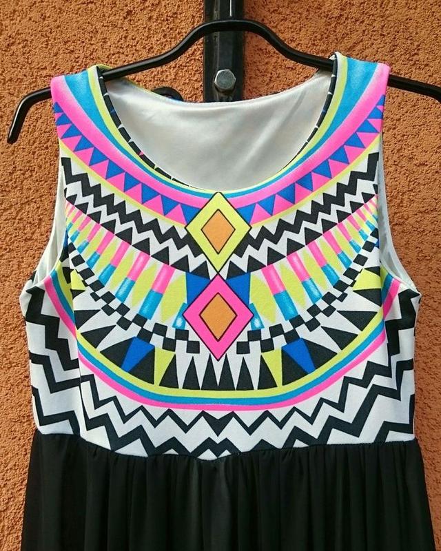 Стильное шифоновое платье Sheinside с ярким принтом. Платье с завышенной талией, на подкладке. Было приобретено за $22. Абсолютно новое. Размер: S Длина: 115 см. Подойдёт на ОГ до 88 см. Верхняя часть: синтетика, низ: шифон. На подкладке внизу не прострочен шов и имеется небольшая стрелка, фабричный брак (см. фото 5).