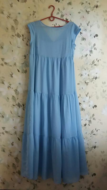 Шикарное платье макси голубого цвета с трикотажной подкладкой. Подкладка не пришита к платью.Платье легкое и комфортное. Сзади вверху завязывается на бант.Состояние идеальное. Длина 144 см, пог 48 см, по талии и бедрам свободно. Длина подкладки 108 см. Обмена и возврата нет. Возможен разумный торг. Внимание, с безопасной оплатой не работаю.