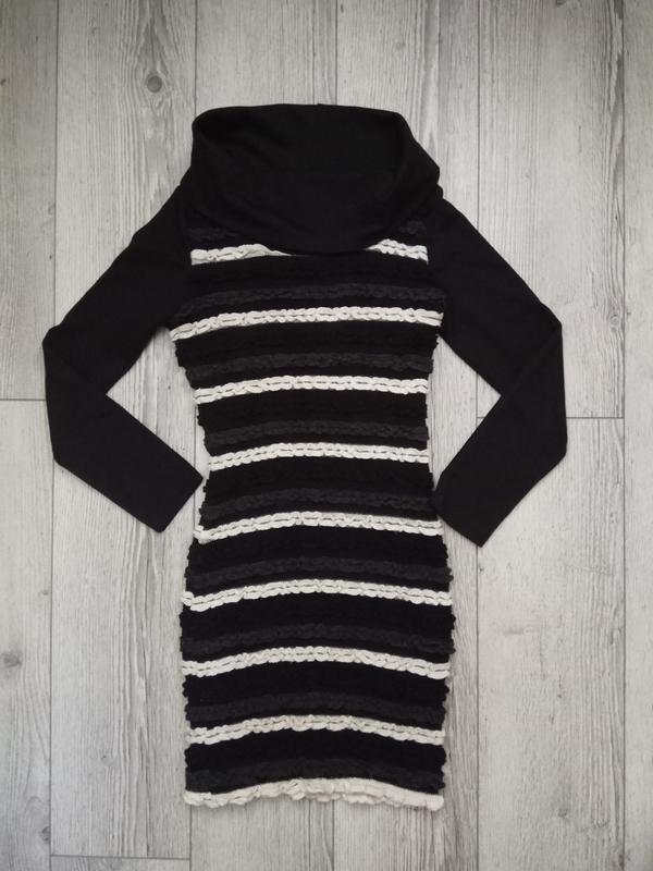 теплое платье. машинная вязка, на подкладке, с объемным воротником, рукава и воротник из ткани. полностью облигающее, поэтому круто стройнит!