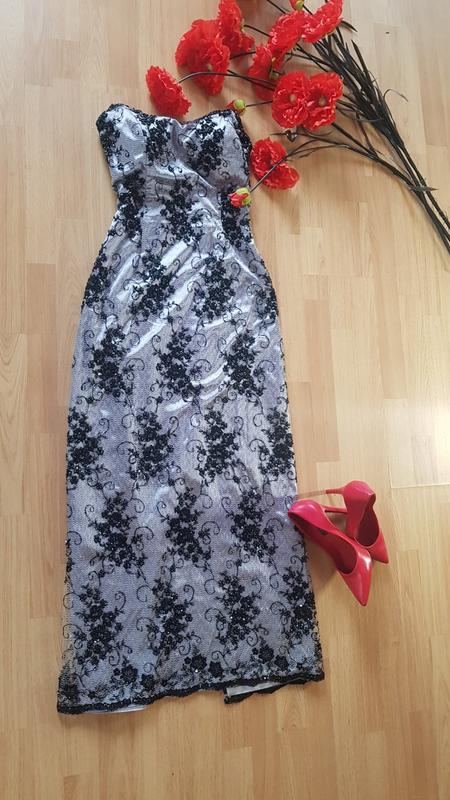 Елегантне вечірнє плаття на атласною підкладці сріблястого кольору.Верх-тоненька срібна сіточка,розшита бісером.На корсетних кісточках.Ззаду по центру розріз. Довжина 130 ПОБІДИ 46 ПОГ 45