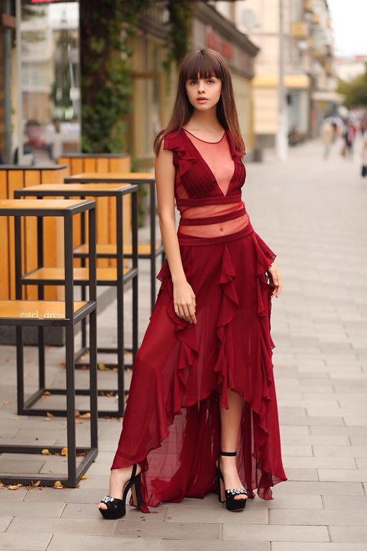 Шикарное платье с шифона . Полностью все просвечивается . В комплекте идёт с шортами . В наличии в двух цветах , чёрный и Бордо . Все модели производства Турции.