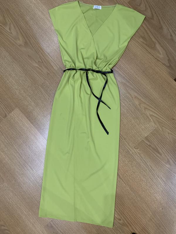 Платье бомба, оливкового цвета, имеет презентабельный вид, отличный вариант на все случаи жизни, внимание толпы точно будет только Вашим. Длина 138, длина до пояса 46, плечи спущены, чёрный ремешок под кожу,не мнётся . О покупке не пожалеете