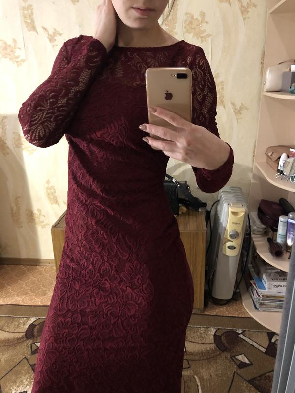 Шикарное длинное платье винного цвета из гипюра. С биркой, не одевалось, покупала в Олко. Кружево хорошего качества, без стрейча, то есть, не будут торчать резинки после носки. Красиво садится по фигуре, на левой ноге сбоку разрез. Не светит, с подкладкой. Размер S. Длина платья 145 см Вопросы в сообщения:)