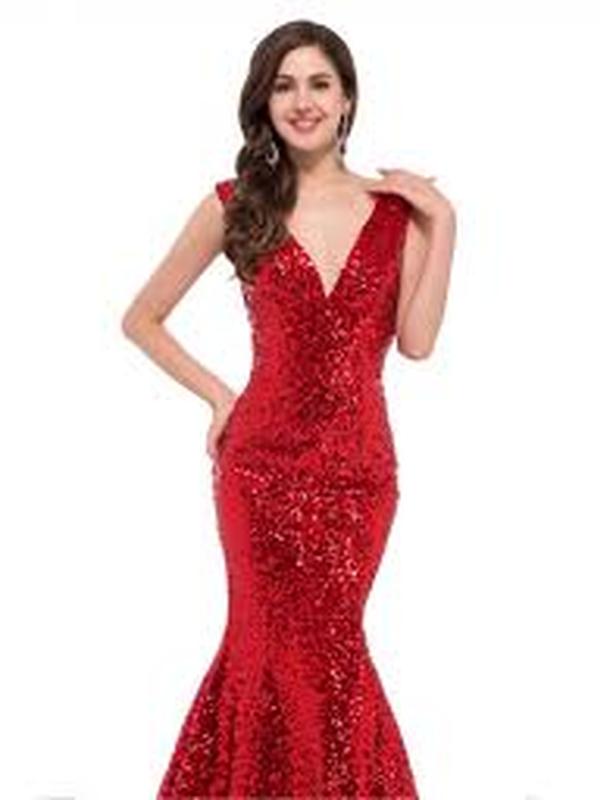 Красное вечернее (выпускное) коктейльное платье рыбка, русалка с вышивкой