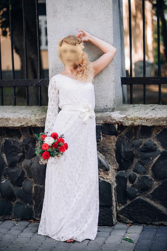 Платье одевалось один раз для фотосессии. Гипюр на подкладе, шита по заказу. На одно плечо, очень нежно и сексуально смотрится. Сделаю замеры при необходимости. Пояс на резинке.