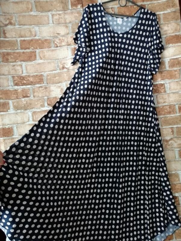 Прекрасное летнее платье из штапельной лёгкой струящейся ткани в горошек. Принт очень стройнит и всегда актуален. Ткань покроена по диагонали , поэтому хорошо тянется и прекрасно садится на любую фигуру от 18 до 26 размера. 🎀 длина 135по центру спинки, от проймы сбоку 89,пог 60-72,бёдра свободные 86-110. Есть белое в чёрный горох