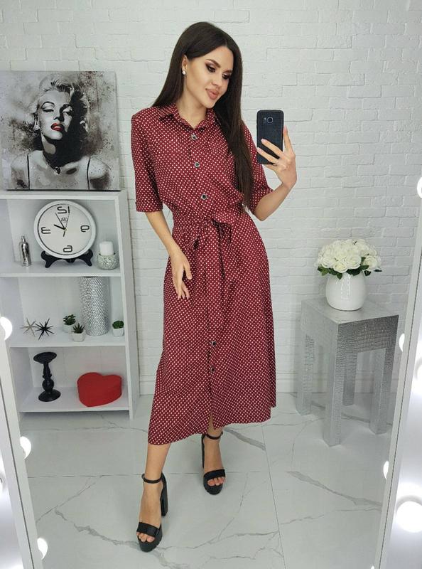 💕💕Супер цена!!!!!💕💕💕 Платье Креатів № 236/А р.р. 42-44; 46-48; 50-52 Ткань: софт Цвет: основа бордо белый горох Цена: 530 грн