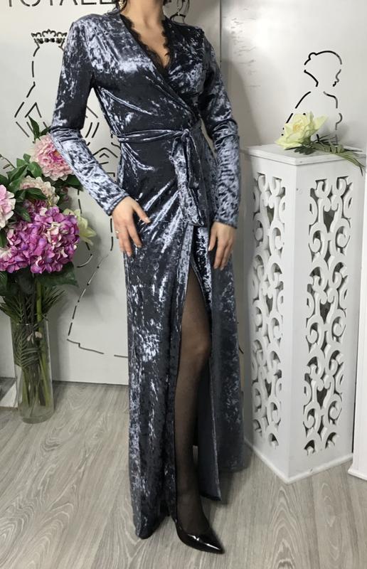 Сукня сірого кольору з переливанням . тканина велюр без дефектів на запах, є декор кружево . Вживу колір гарніший і яскравіший . Розгружаю гардероб за додатковими фото пишіть , можливий торг.