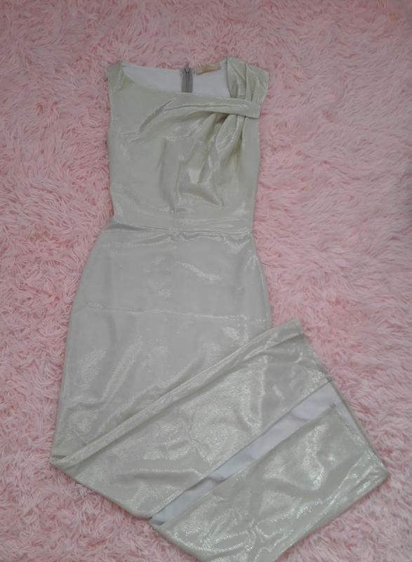Золотисте плаття із розрізом, елегантне і вишукане.