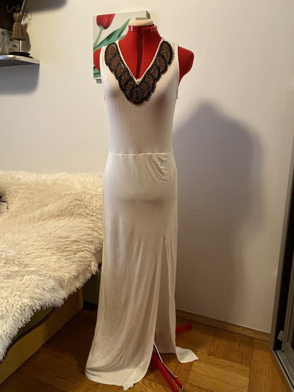 Сукня у молочному кольорі з красивим вишиттям На борці розмір 14, але на мій погляд найкраще підійдете на 12{L}. У нижній частині короткий підюпник Розтягується, приємне до тіла
