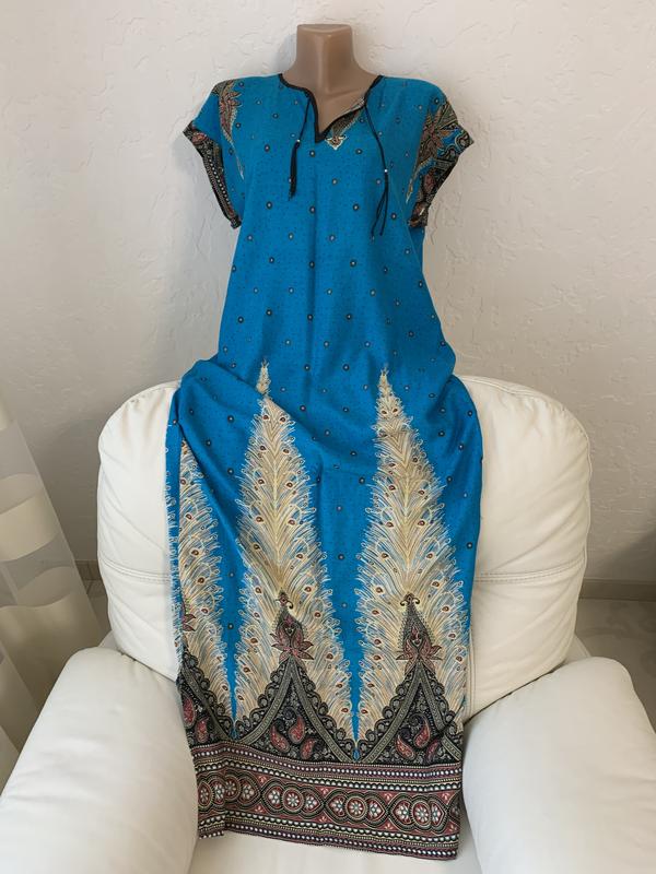 Натуральное тоненькое , воздушное , длинное платье-туника Идеально на море Цвет - ярко бирюзовый Пр-во Египет Разм М Длина -137 ПОГ -51 ПОТ -50 ПОБ -51 Высота разрезов по бокам -20 см Ширина проймы -20 см 100% хлопок