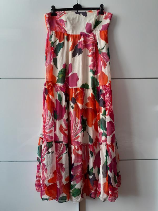 Шелковое платье в пол клёш лиф без бретелей
