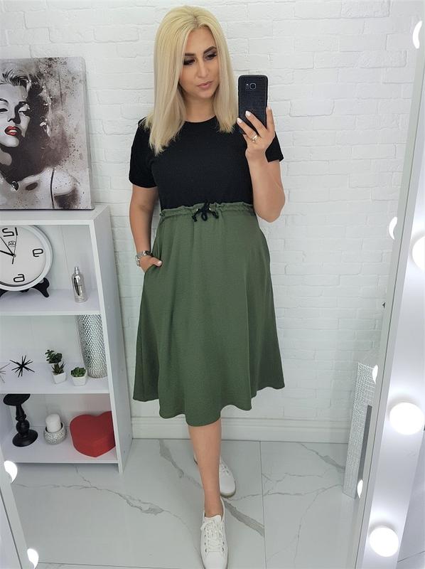 #421 Платье Арт.7018 Размер: 50-54 Описание: платье, свободного кроя, широкое, для придания формы затягивается шнурком, ткань двух видов, длина 117 Ткань: верх, турецкий стрейч-котон(кулир), юбка - креп-софт жатка