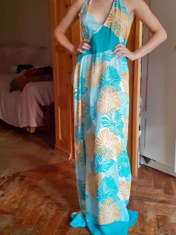 Нарядное летнее шифоновое платье на подкладке большого размера Длину можно регулировать. Спинка откритая. ПОГ58 ПОБ72 ДЛИНА от 125