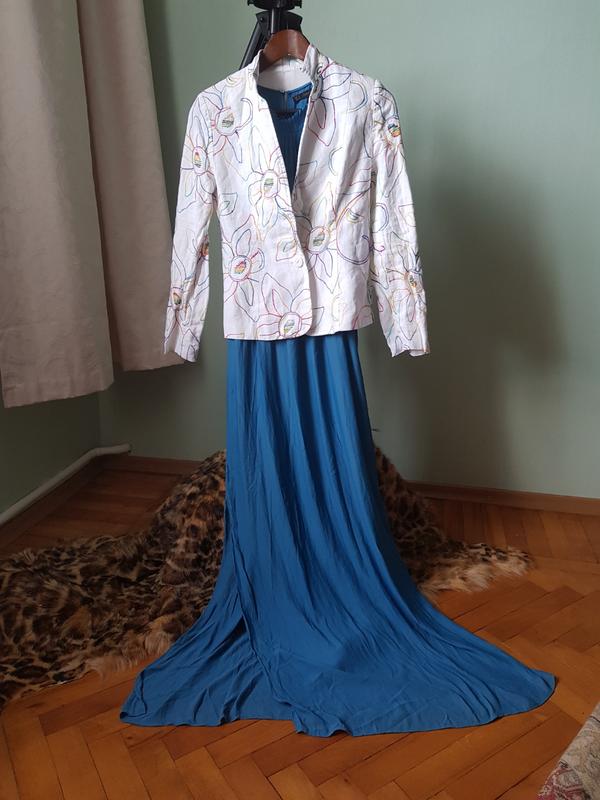 платье в пол и легкой летящий ткани по бокам разрезы 60 см; оригинальный вырез на спине длина 151