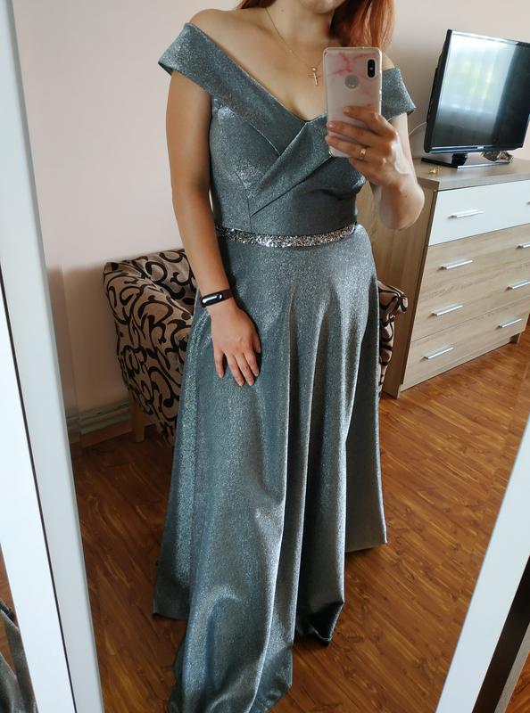 Елегантна та зручна вечірня сукня сріблястого кольору, красиво виблискує на сонці. Вдагаляся один раз. На етикетці вказаний 42 розмір, в дійсності ж 46. В сукню вшитий ліф. Поясок іде разом з сукнею. Більше фото та заміри надам при потребі.