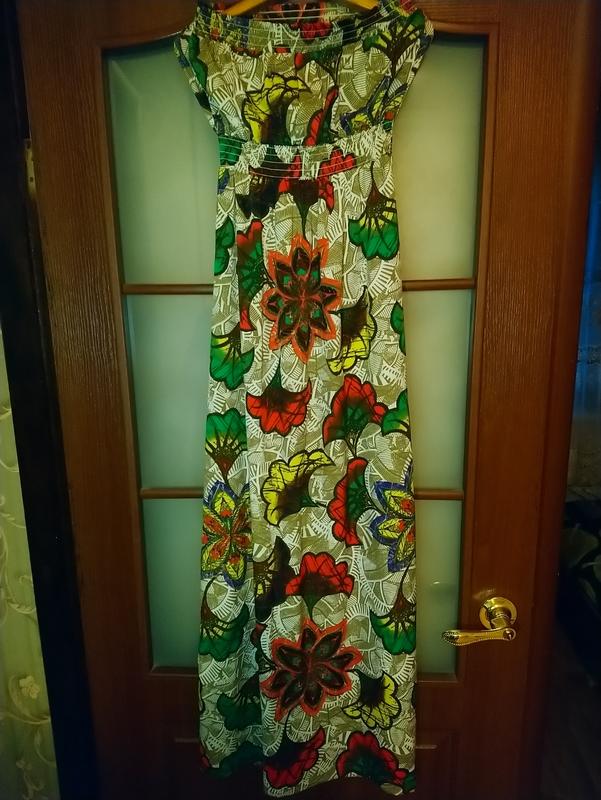 Лёгкое, летнее платье с ярким и интересным принтом, без брителей, длинна изделия 141см