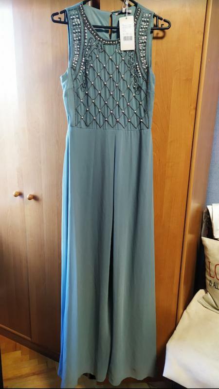 Загальна довжина 156см,плечі 31,пог 43,пот 35,на бедрах вільне.Довжина верхньої частини до талії там де бісер 40.