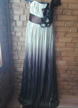 платье в пол очень эффектно смотрится грпдиент в своем цвете свкраплением золота сзади есть утяжка корсета
