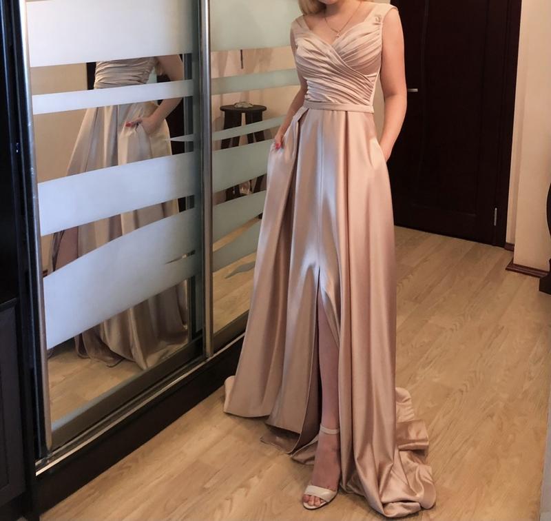 Продам шикарну сукню,надевалось один раз,купувала в Лаурі Стайл.У відмінному стані.Сукня нюдового кольору,якісна щільна шовкова тканина.Сукня подойтет для випускного. Довжина плаття від плеча 150 см Довжина спідниці 113см Об'єм грудей 80 см Об'єм талії 70 см