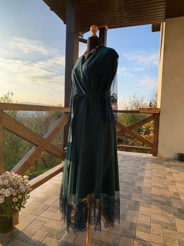 Сукня, в гарному стані, одягнута один раз на весілля. Якість тканини - цупкий стрейч, та фатиновий стрейч з французьким мереживом. Чудово підійде на 48, 50, 52р., На гарний пишний бюст. Сукня реально стройнить, видовжує силует. Купувала за 2000грн ( була свідком на весіллі). На фатичні є майже незамітна затяжка, позаду плаття. Але якість, і легкість цієї сукні вас вразить, дуже гарна сукня.