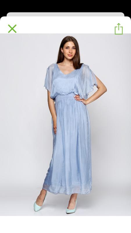 Романтичне плаття в грецькому стилі, з 100% шовку. Підкладка: віскоза 95%, еластан 5% ,по лінії талії на резинці. Довжина сукні по спинці 143 див. Виробництво Італія