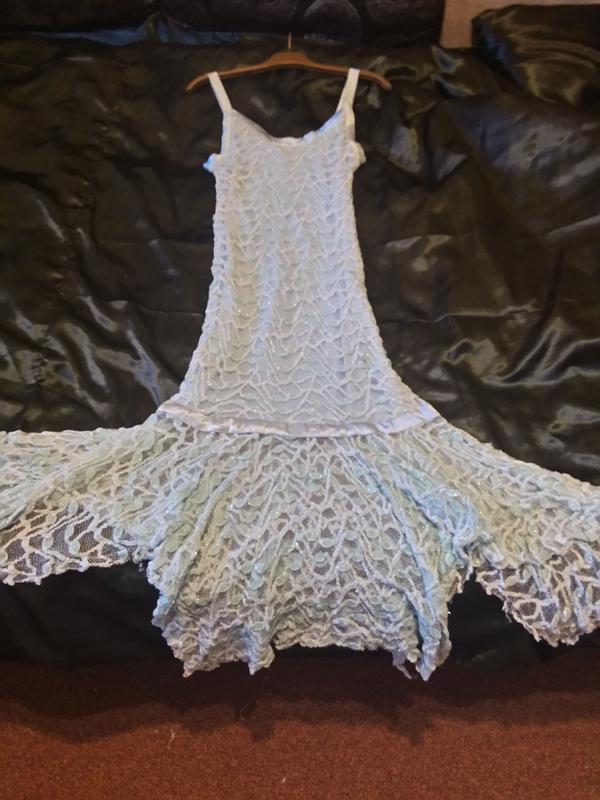 Красивенное платье нежно-бирюзового цвета, стрейч по фигуре,смотрится очень шикарно.Хорошо тянется....сядет на любой размер S, M,L. Очень красивый цвет,фото не передает.