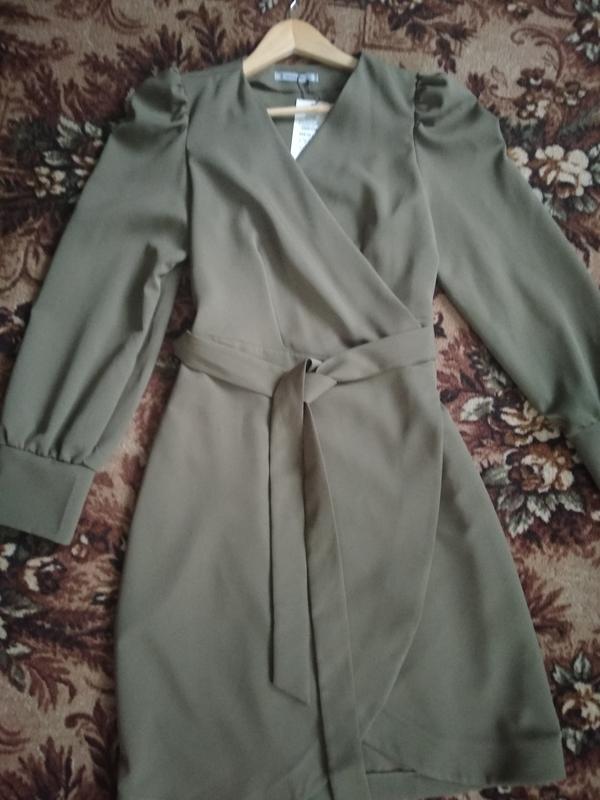 Модное платьеце на запах, цвета хаки, приятная ткань, почти не мнется. размер М.