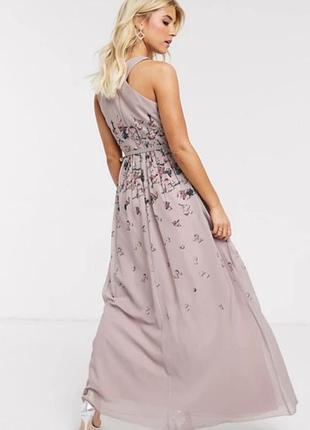 Платье макси пудрового цвета со складками и принтом бабочек Little Mistress Высокая шея Пояс на талии Застежка-молния сзади Макси длина Обычная посадка Соответствует размеру
