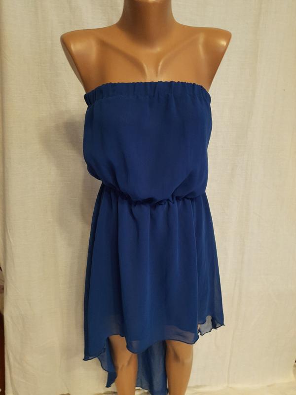 Шикарное синее платье из шифона. Длина переда - 63 см, по спинке - 118 см, Пот 27 см, тянется до 37 см.