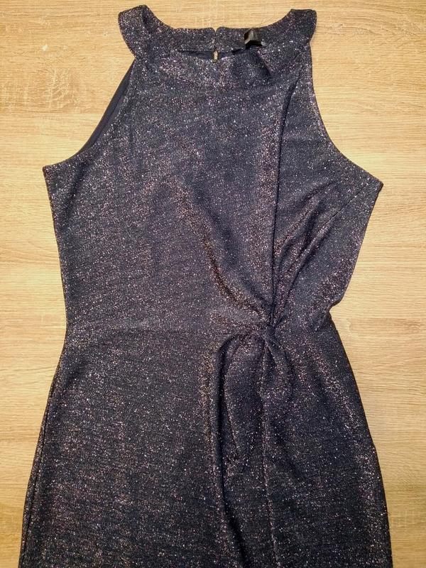 Платье Esmara. Прямой крой, спереди на левом боку присборка ткани на талии и ниже разрез. Ткань трикотажная мягкая, хорошо тянется, не колется, люрекс красиво переливается, не мнется. Состав: 82% полистер, 12 нить люрекса, 6% эластан. Цвет ткани серый, из-за люрекса немного кажется светлее. Замеры Размер S 36/38 (8/10): длина от плеча 149 см, ширина плечиков 24 см, ширина между подмышками 44 см, ширина по талии 33 см, ширина по бедрам 48 см #4/6