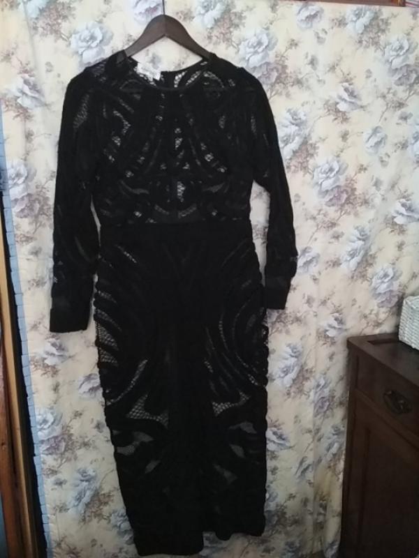 ажурне, без підкладки. Довжина 128 см., Рукав 62 см., Пот 38 см., Пог 45 см., Поб 50 см. На спині замок, не тягнеться.