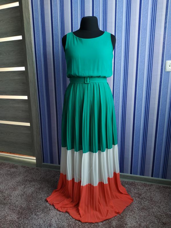 Яскрава сукня-плісе довжини максі. Сукня на підкладці. З поясом. Розмір S-M. Матеріал: шифон. Склад матеріалу: 100% поліестер. Довжина 140см. Обхват грудей 96см.