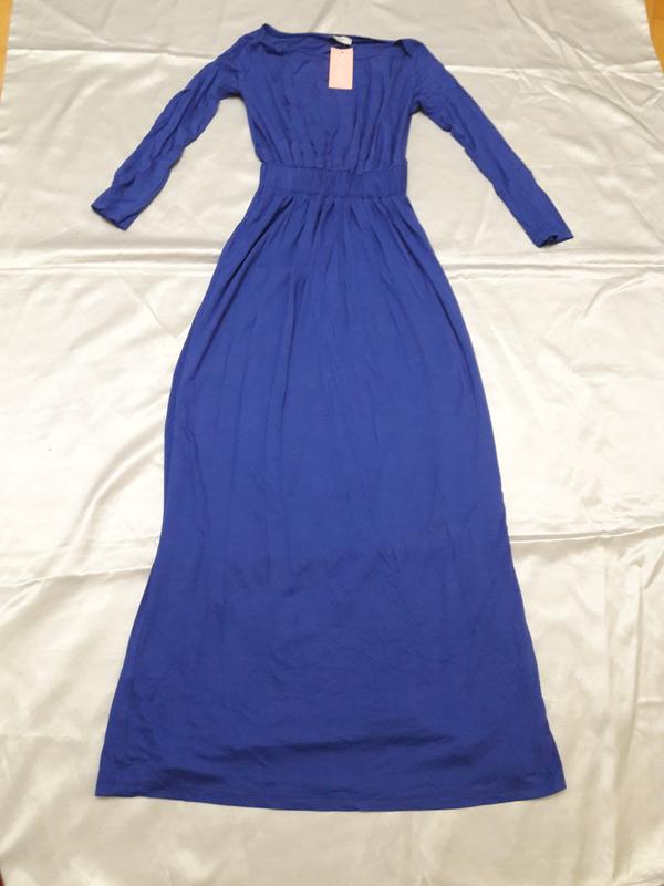 Платье насыщенно василькового цвета, Турция. ПОГ 52 см, ПОТ 28 см, растягивается до 45 см, ПОБ 68 см, длина до талии 39 см, ширина резинки 5 см, длина юбки 104 см. Вискоза 95 %, эластан 5%.