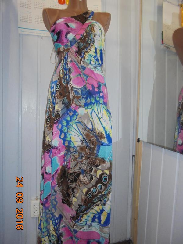 Новое яркое платье, размер норма, на платье указано р. С/М, подойдет на 44-46, на 48 р. в обтяжку, цена 200 грн, купила себе, а мне мало. НОВОЕ с биркой. Длина платья +- 146 см, ОГ в спокойном состоянии - 80 см. тянется до 100 см., ОТ - 70-90 см.,донизу идет свободно, ОБ - 100-120 см., ткань как масло, тянется отлично. платье очень красивое яркое летнее, сбоку есть разрез.
