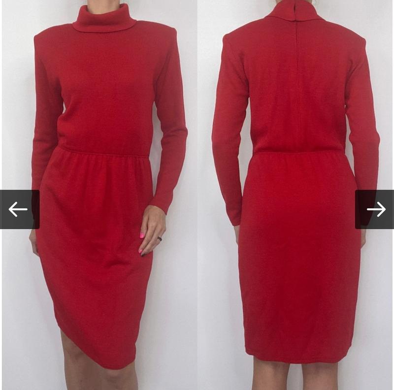 Вінтажне червоне в'язане плаття-водолазка з довгим рукавом, міді