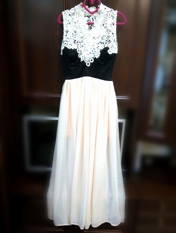 Сукня пошита на замовлення. Низ шифоновий, верх прикрашений дорогим мереживом. В корсет вставлені кісточки, щоб тримав форму. В гарному стані. Розмір м.