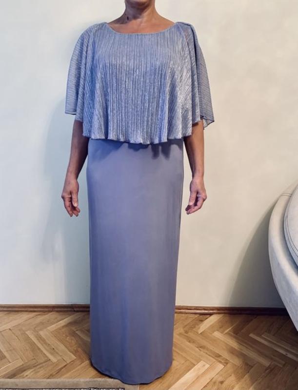 Нова (з біркою) святкова сукня. Шрі-Ланка. Купувалась в 2020р за 30$. Довжина 152см (тканина дозволяє вкоротити при потребі). Стрейчева- підійде на будь-які параметри. Не просвітлюється. На спинці -замочок. Накидка на плечі- приховає усі складочки під руками і від білизни. Зручна і приємна до тіла. Півобхват стегон в спокійному стані-52.