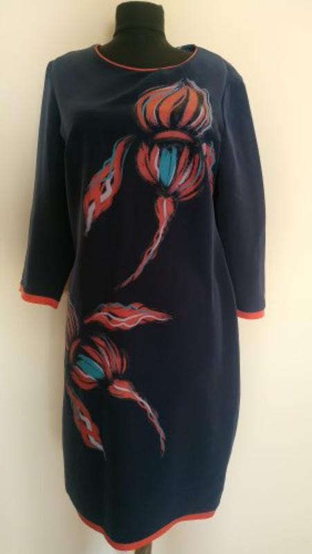півобхват грудей 49 см. Півобхват талії 45 см . Півобхват бедер 54 см. Півобхват плечей 40 см. Рукав 48 см. Довжина 98 см.