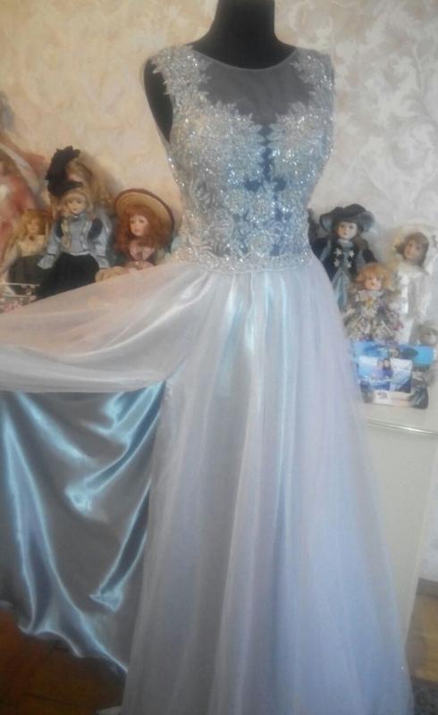 Продам новое вечернее платье размер 42-46 стального цвета Прозрачный лиф украшен дорогим расшитым кружевом юбка с разрезом