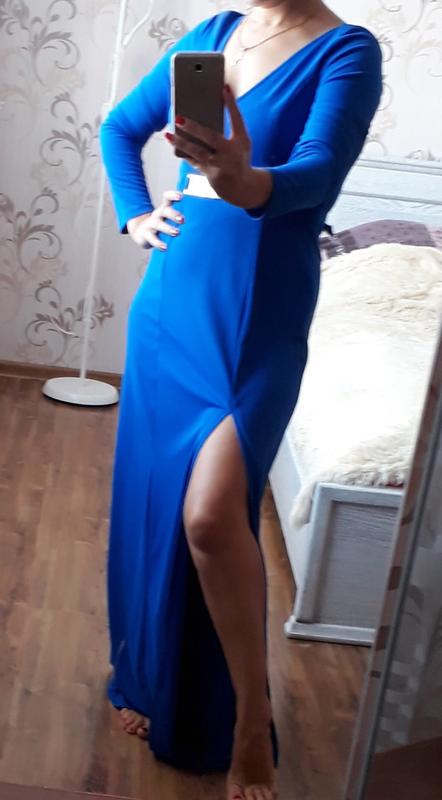 Вечірнє плаття максі, синього кольору з красивою спинкою,розріз на ніжці. Розмір М