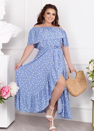 Платье в пол арт. pog. Лёгкое нарядное платье в пол с шикарным воланом по юбке выделит Вас на любом мероприятии. Выполнено данное изделие из ткани софт в тpeндoвых цветах этого лета. В размере универсал 48-54 Цена : 690 грн